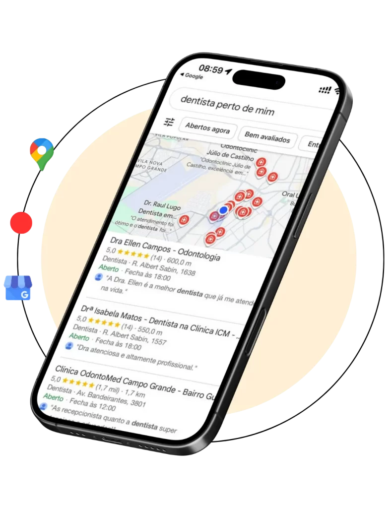 Iremos colocar seu Perfil do Google Meu Negócio nas primeiras posições com palavras-chave de pesquisa, otimizando seu perfil e site para que o Google entenda a relevância do seu negócio para buscas específicas.